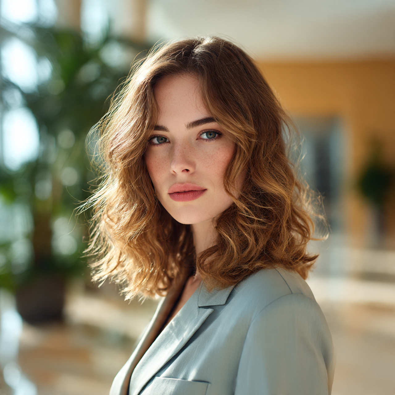 The Voluminous Blowout is the epitome of polished business casual hairstyles, conveying effortless luxury and high maintenance—without the high effort. This idea relies on body and movement, but always within a structured shape that maintains its professional silhouette throughout the day. This look is fantastic for high-stakes meetings.