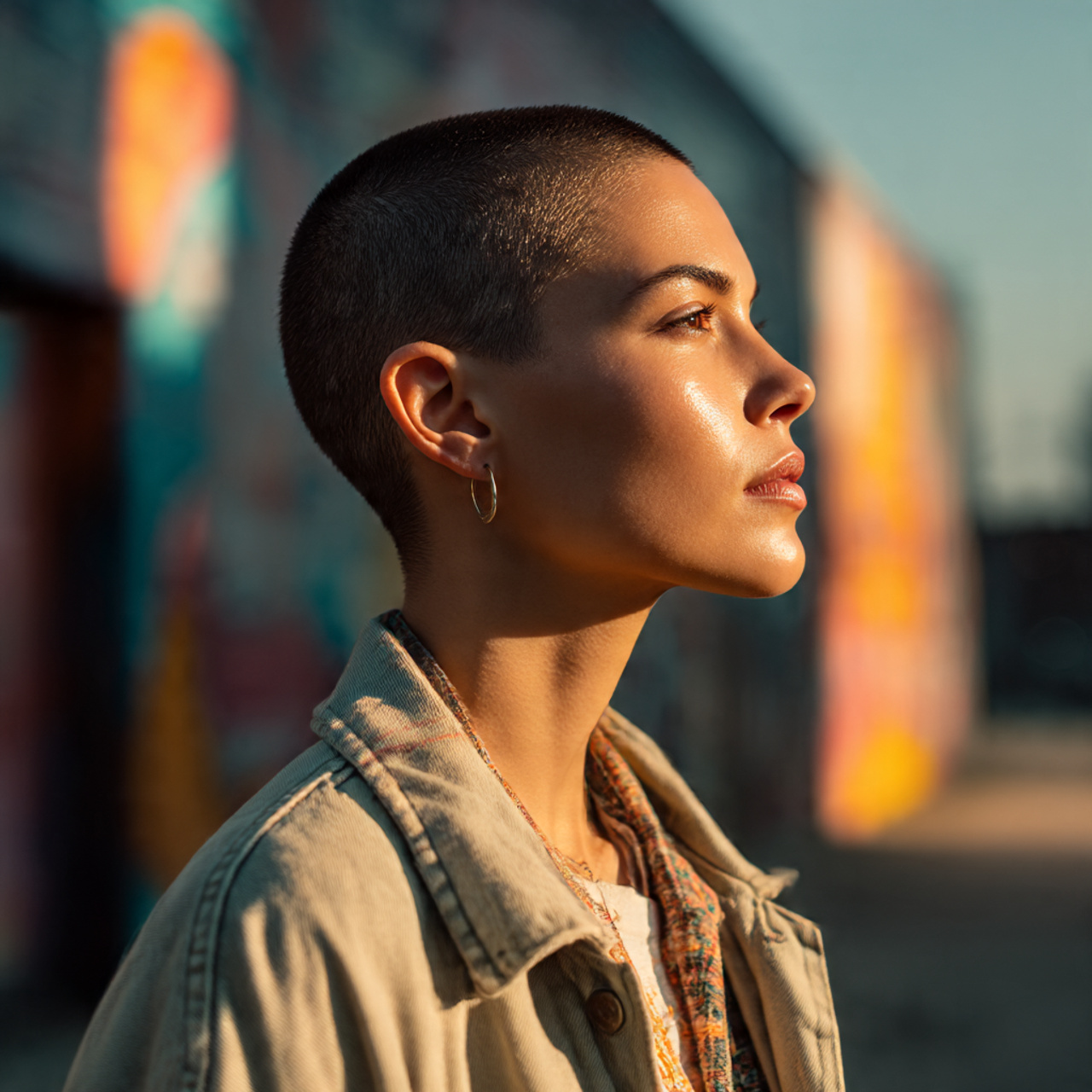 Makeup looks for shaved heads often benefit from a bolder, more intentional approach since the hair no longer dominates the face. With the focus immediately drawn to the eyes and facial symmetry, this is the perfect opportunity to experiment with dramatic eyeliner, vibrant eyeshadows, or sharply defined brows. The lack of hair allows the face to become a perfect, unhindered canvas for artistic expression.