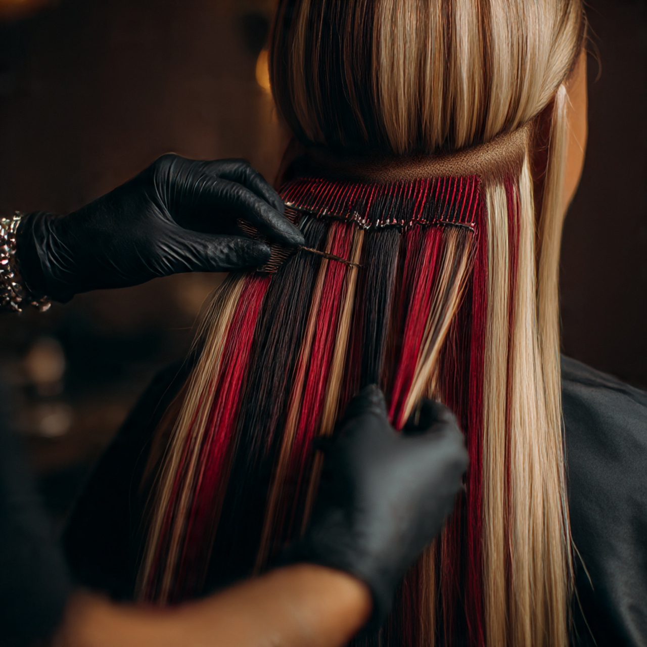 Calico hair and hair extensions are a perfect pairing for those who want the look but lack the necessary length or density. The extensions can be custom-colored in the three distinct calico shades and then strategically blended with the client’s natural hair. This allows for an immediate, high-impact result without the long-term commitment or potential damage of heavily coloring natural hair.