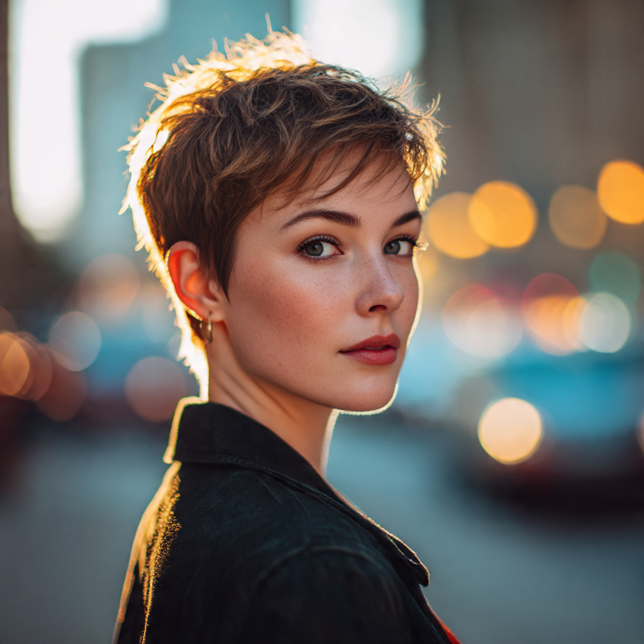 a stylish woman with voluminous short hair