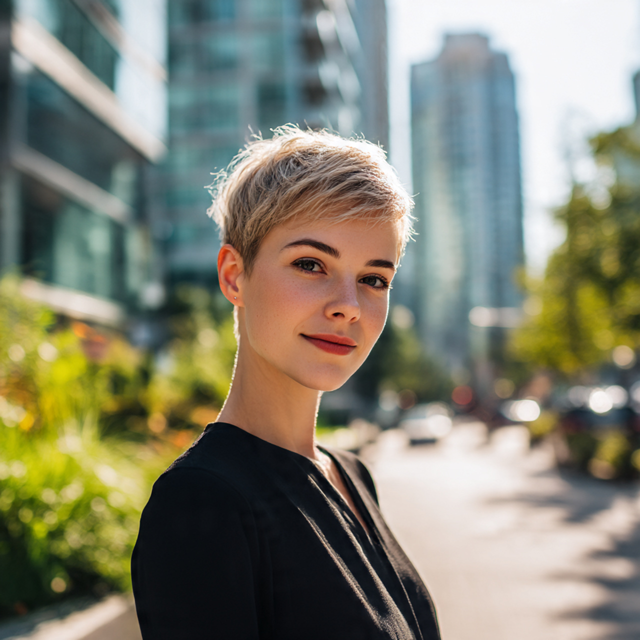 a confident woman with a sleek short