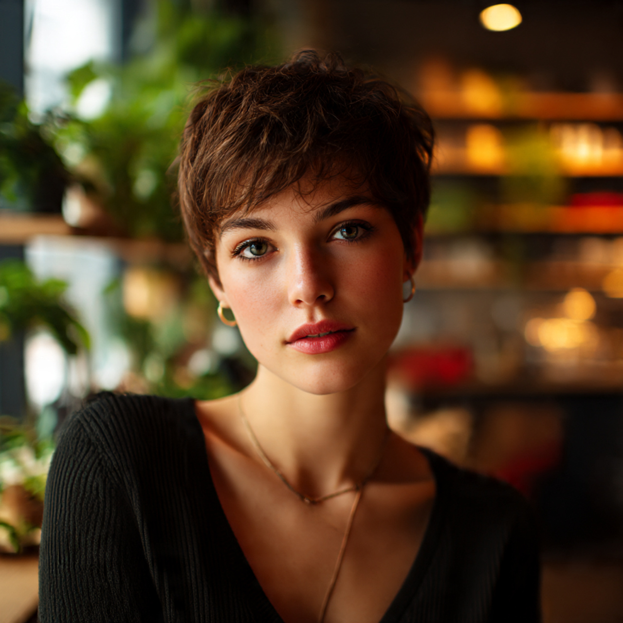 a confident woman with a short haircut