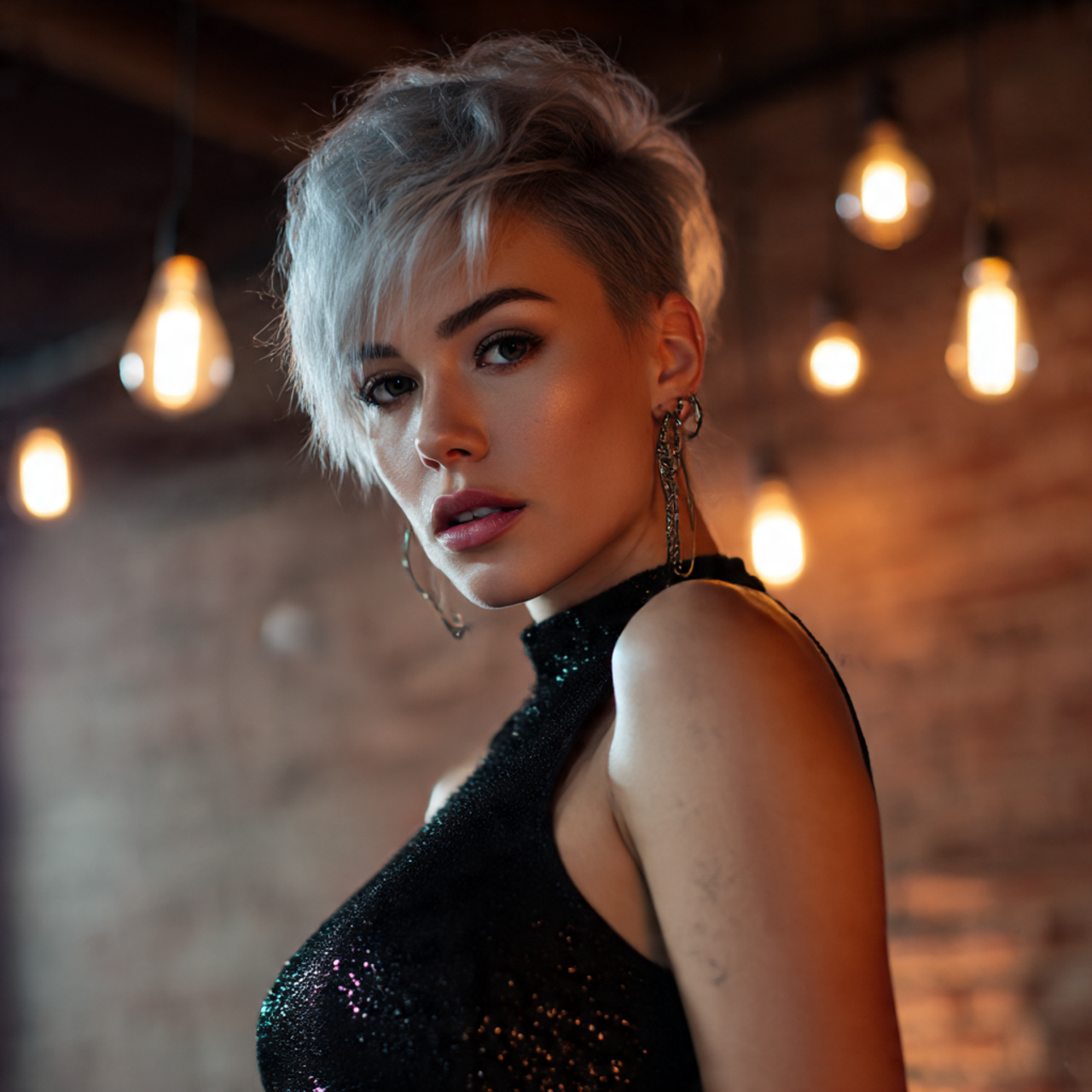 When heading to the club, accessories are your best friend for maximizing your wolf cut’s impact under flashing lights. Try securing the front layers with a velvet headband or a row of small, sparkling barrettes placed just behind the ear on one side.